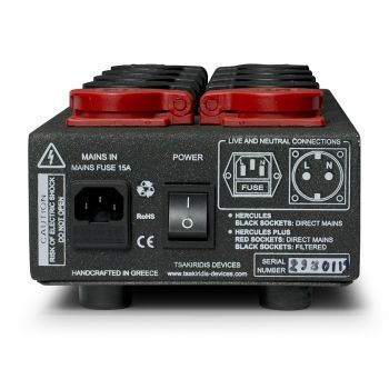 Το Tsakiridis Devices Hercules StaR* ειναι θωρακισμένο πολύπριζο 10 υποδοχών SCHUKO χωρις φιλτρο, εσωτερικου διαμοιρασμου καλωδιων αστεροειδους διαταξης (3x10 ξεχωριστες καλωδιωσεις, 3x1 για καθε socket). Εσωτερικη καλωδιωση τετραπλης διατομης σε σχεση με το στανταρ μοντελο.