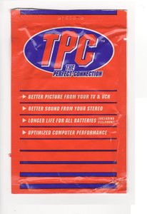 A unique product to improve the performance of audio/video components, TPC (The Perfect Connection) makes things work better by actually improving the quality of their electrical connections. Just one application of TPC's chemically-treated wipe neutralizes oxidation, protects against corrosion, and even - by soaking into and filing micropores in plated contact surfaces - increases total effective contact area, for better signal transfer and reduced low-level information loss.