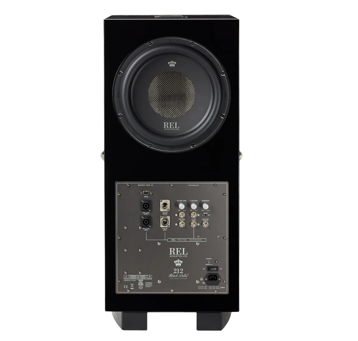 Το REL 212 Black Label ειναι ενα ενεργο υπογουφερ με 2x 12" woofers και 2x 12" passive radiators, με ενσωματωμενο ενισχυτη 1000wrms Linear Class D. Δυναται να συνδεθει ασυρματα μεσω REL Air System transmitter.