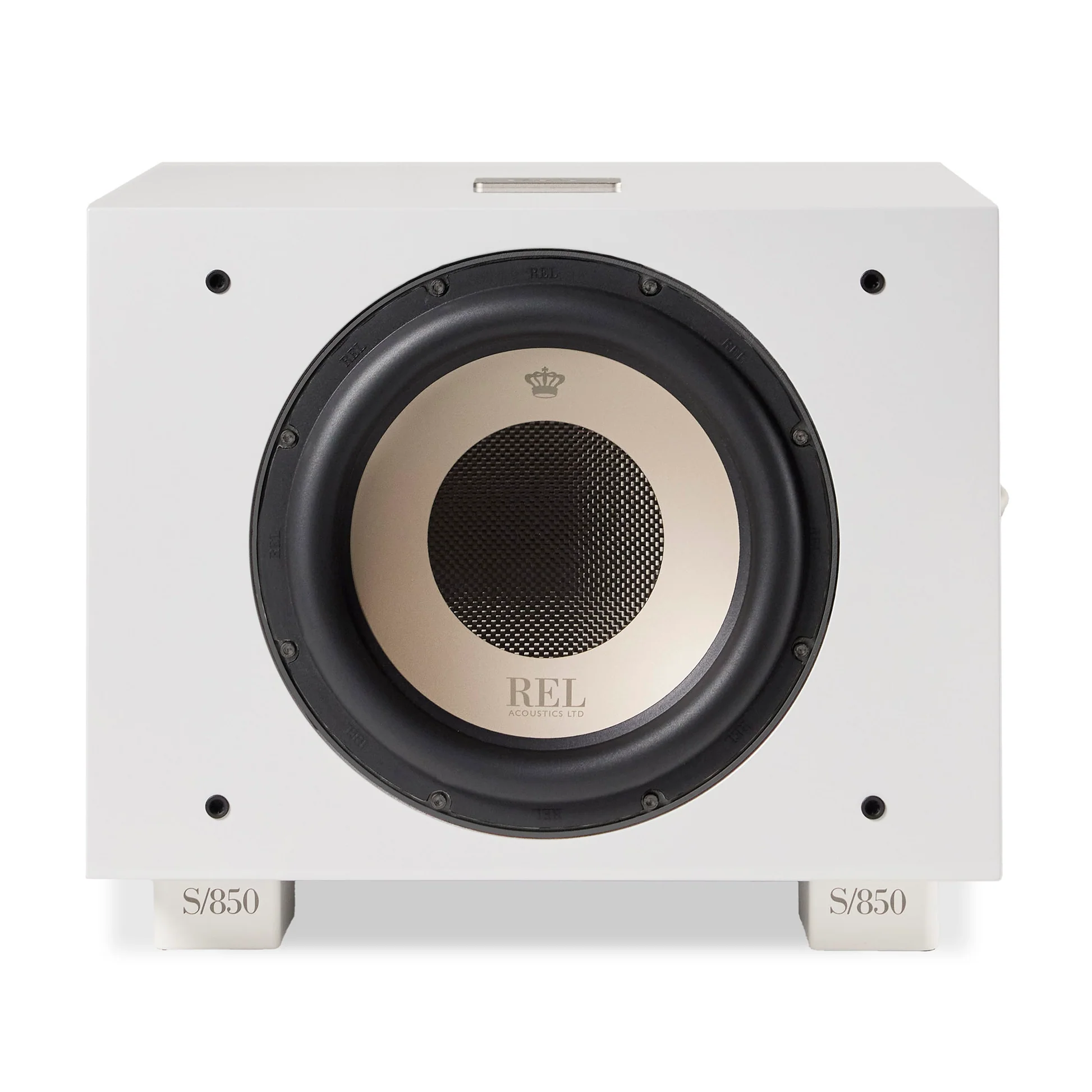 Το REL S/850 ειναι ενεργο υπογουφερ με 1x 12" woofer και 1x 12" passive radiator, με ενσωματωμενο ενισχυτη 850wrms Linear Class D. Δυναται να συνδεθει ασυρματα μεσω REL Air System transmitter.