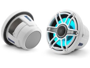 M6 8.8-inch Marine Coaxial Speakers (125 W, 4 Ω) - Gloss White Trim Ring, Gloss White Sport Grille with RGB lighting