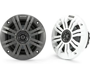 Τα Kicker KM44 ειναι ζευγος ηχειων για σκαφη (αδιαβροχα), 2 δρομων με 1x 4" woofer και 1x 0.5" tweeter. Περιλαμβανονται 2 ζευγη γριλλιες (λευκες, ανθρακι). IP 66 βαθμος ανθυγροτητας.