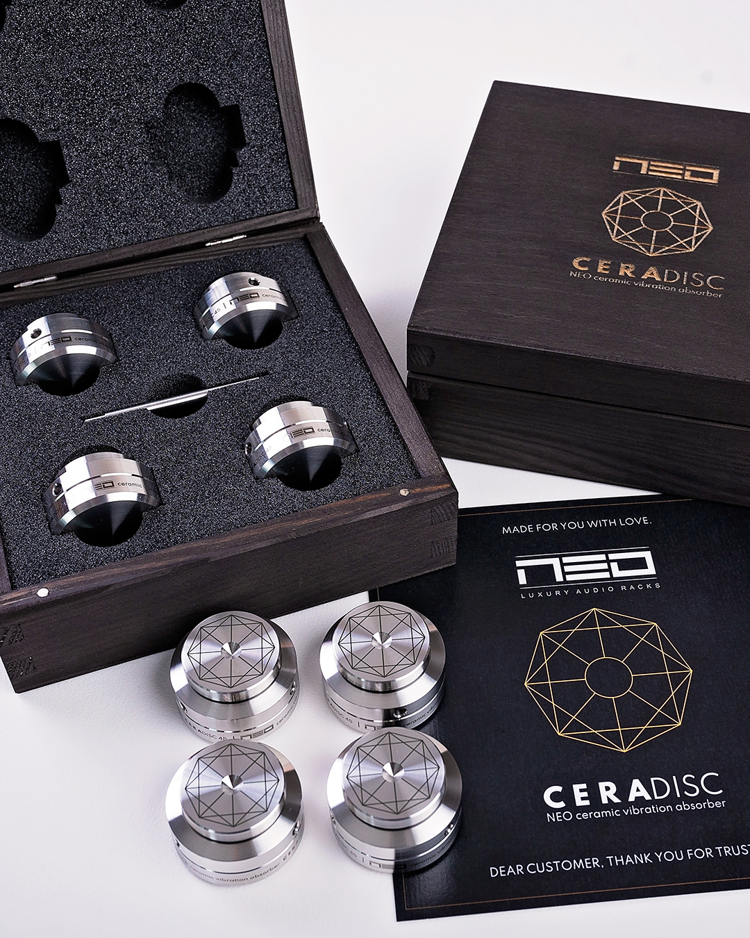 Enter the world of CERADISC, where perfect technology works like an artist, gradually shaping and refining the details until it finally creates a beautiful work of art. In this way, even your musical experience can be shaped to perfection. The sound of the instruments will be more natural, detailed and precise. Our pads, or feet underneath the components, are that step.