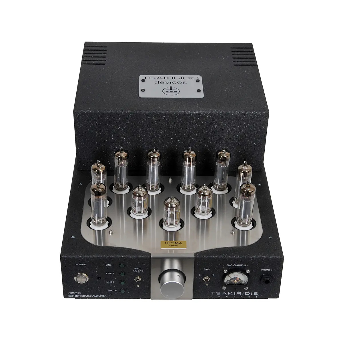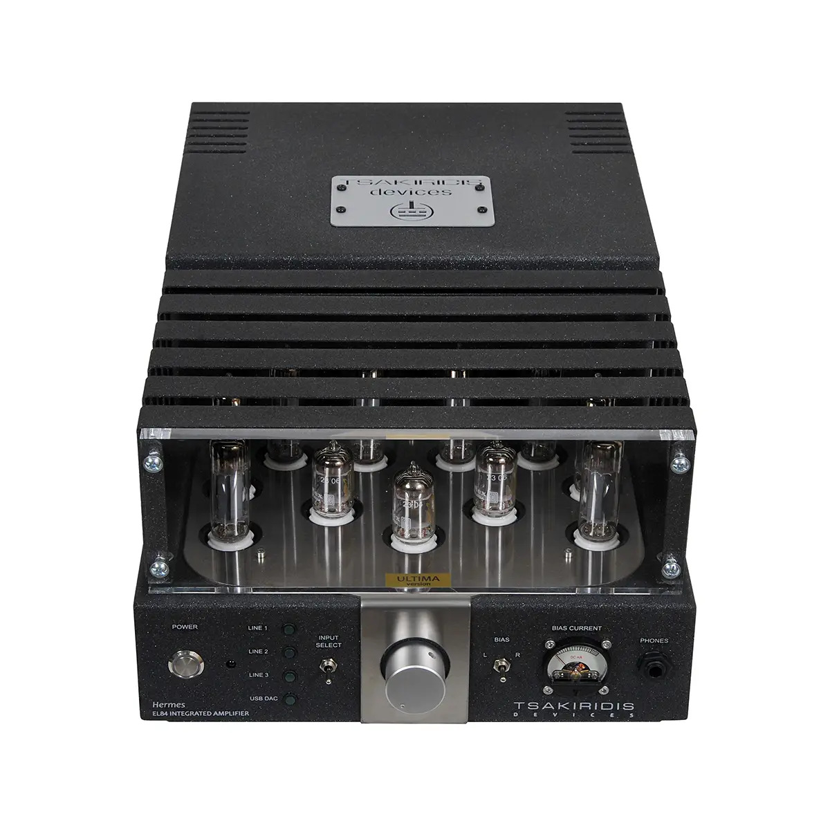 O Tsakiridis Devices Hermes ειναι τηλεχειριζομενος ολοκληρωμενος ενισχυτης ταξης ΑB. 2x25 wrms με λυχνιες EL84. Εισοδοι: 3x Line.