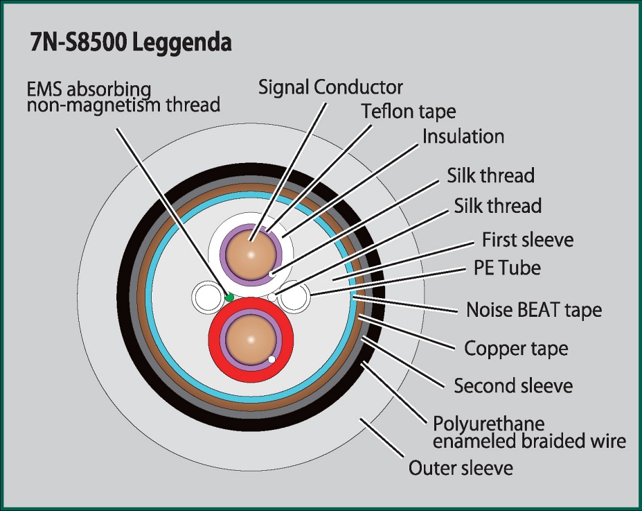 • Signal Conductor: 7N Cu D.U.C.C Stressfree 0.37mm×50strands×2cores