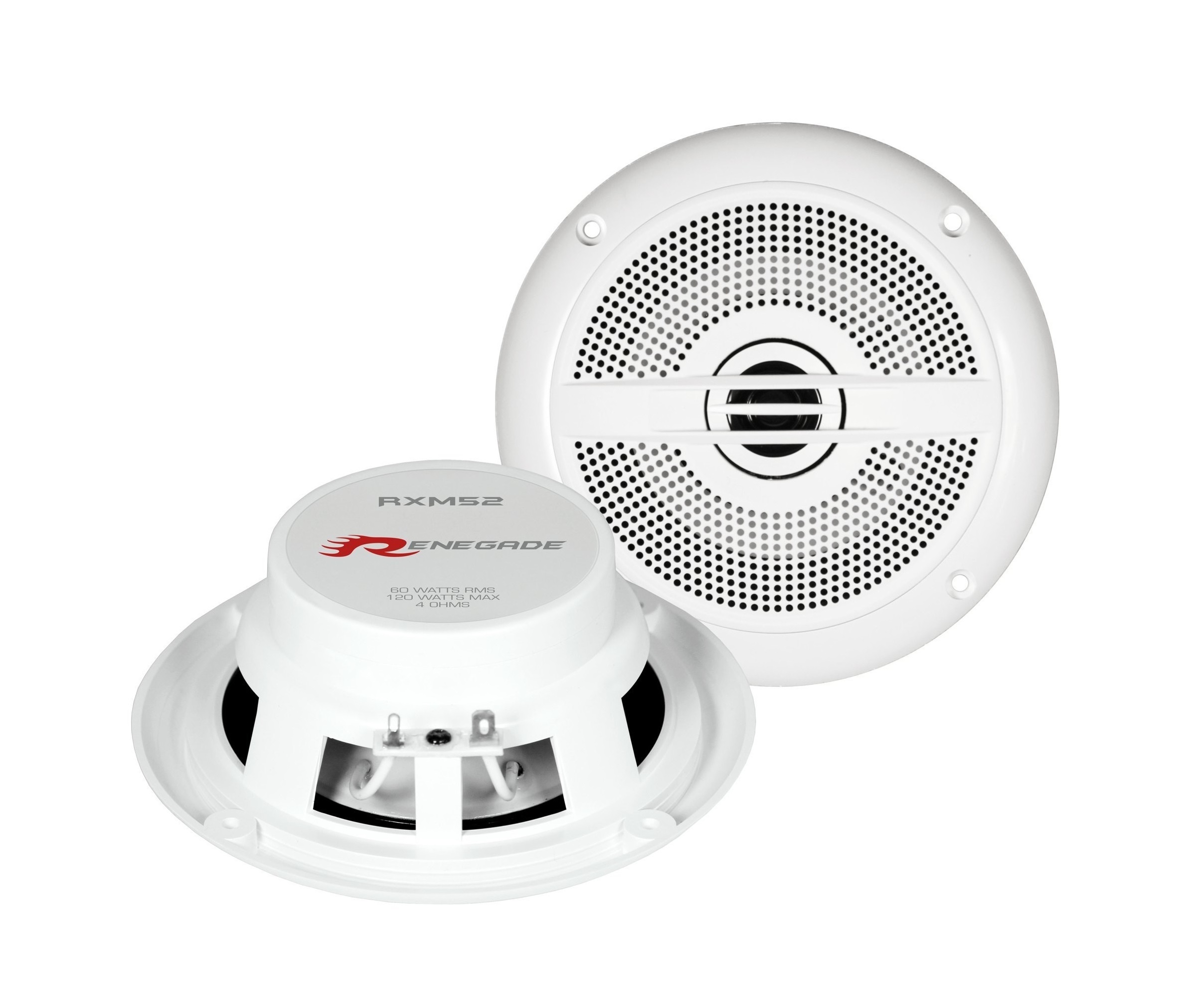 Τα Renegade RXM-52 ειναι ζευγος αδιαβροχων ηχειων θαλασσης, καταλληλα για σκαφη η περιβαλλοντα με υψηλη υγρασια. ΕΙναι 2 δρομων με woofer 5.25" και tweeter 1". Διαχειριση ισχυος 80 wrms - 160 wmax.