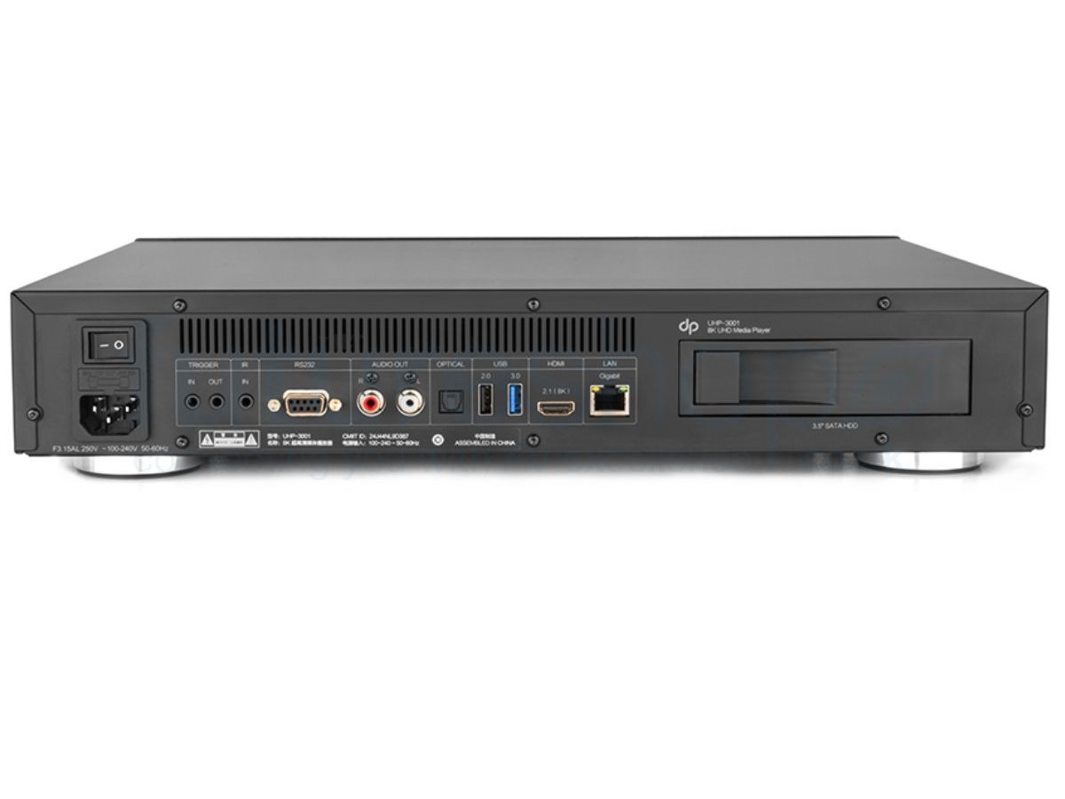 Το Dorpo UHP-3001 είναι universal 8K UHD media player με υποστήριξη αναπαραγωγής τοπικού και δικτυακού περιεχομένου υψηλής ανάλυσης. Υποστηρίζει έξοδο εικόνας έως 8K@60Hz και 4K@120Hz, HDR formats (Dolby Vision, HDR10+, HDR10, HLG), πολυκαναλικό audio passthrough Dolby Atmos και DTS:X. Διαθέτει HDMI 2.1a με eARC, ενσωματωμένη θύρα SATA 3.0 για δίσκο έως 24 TB, συνδεσιμότητα Gigabit Ethernet και Wi-Fi 6, καθώς και εξοδους Optical και Line Out.
