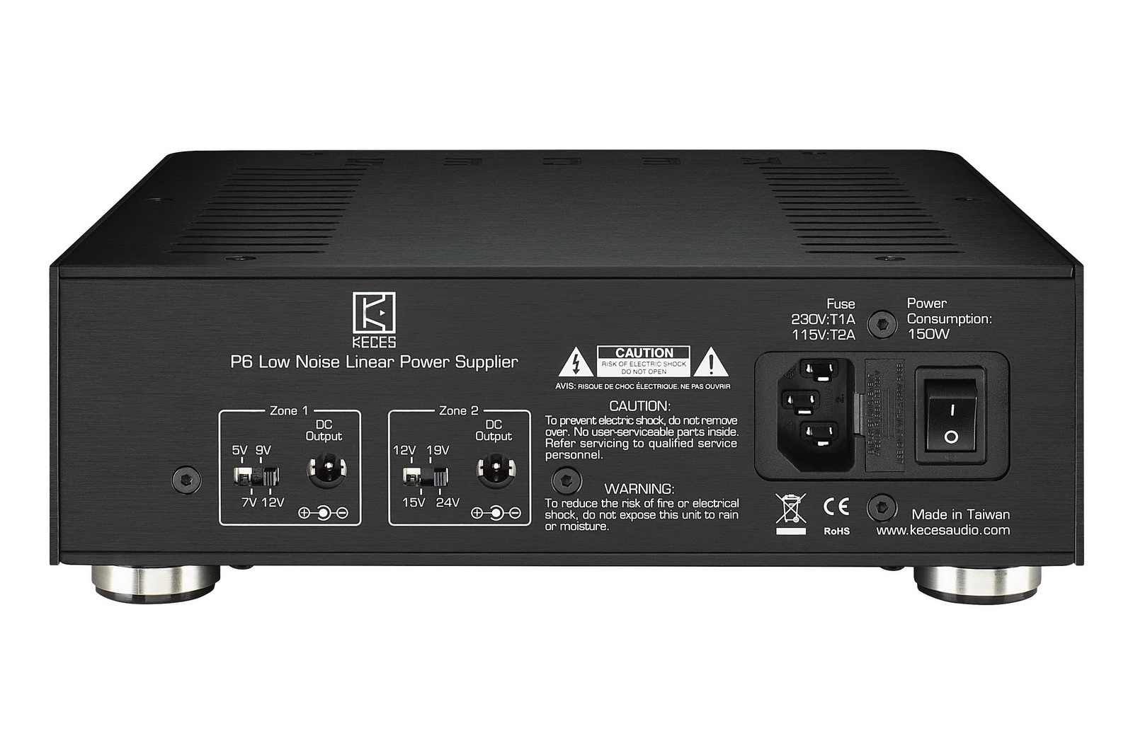 Το Keces P6 ειναι γραμμικο τροφοδοτικο DC (και φιλτρο) που παρεχει σε 2 ζωνες συνεχους ρευματος (DC), Α ζωνη: 5V, 7V, 9V και 12V, Β ζωνη: 12V, 15V, 19V, 24V, στα 3Α amperes, για switchers, routers, optical isolators κλπ.