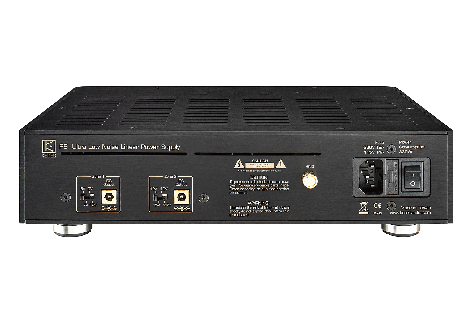 Το Keces P9 ειναι γραμμικο τροφοδοτικο DC (και φιλτρο) που παρεχει σε 2 ζωνες συνεχους ρευματος (DC), Α ζωνη: 5V, 7V, 9V και 12V, Β ζωνη: 12V, 15V, 19V, 24V, στα 5Α amperes, για switchers, routers, optical isolators κλπ.
