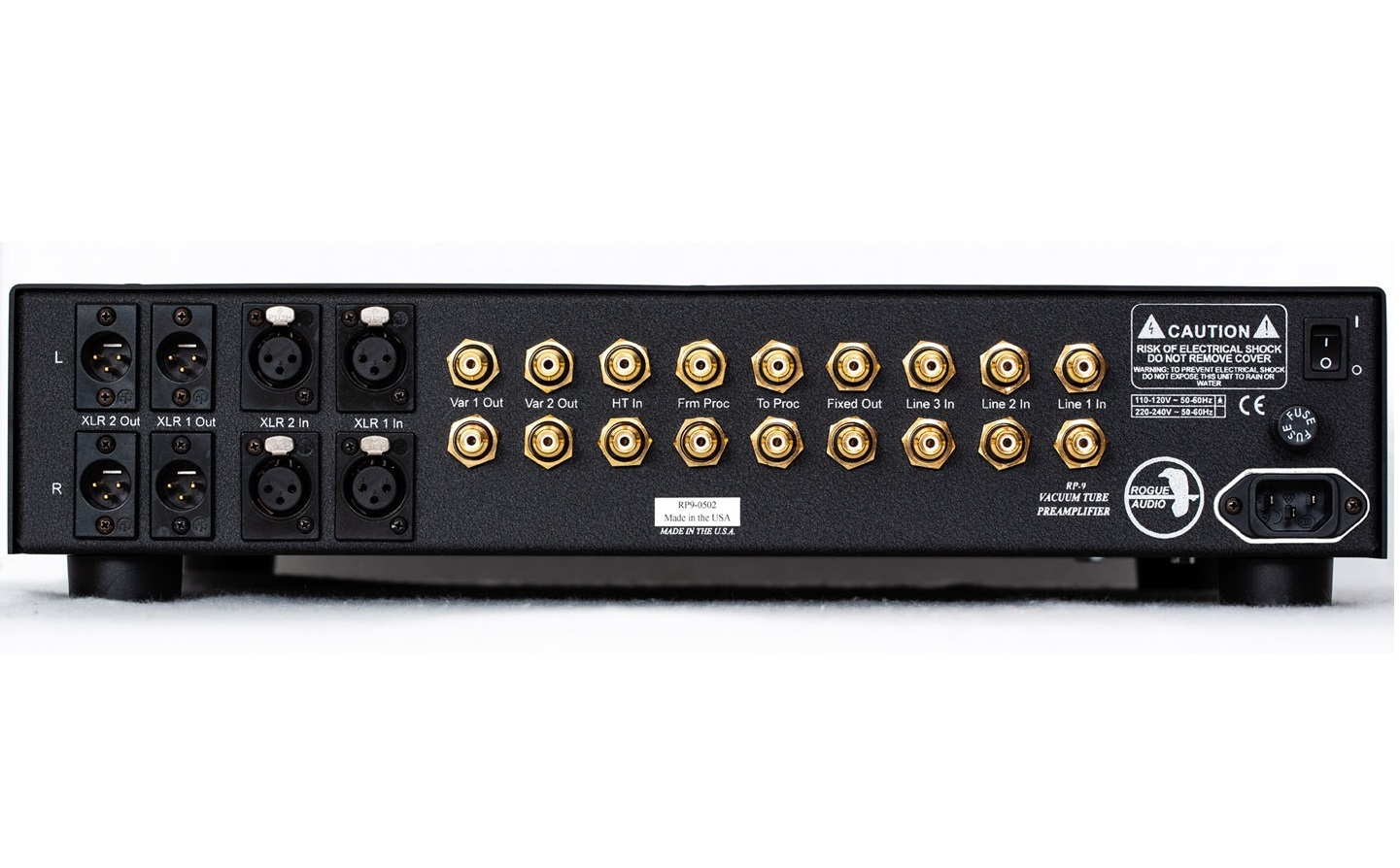 Ο Rogue Audio RP9 v2 ειναι ενας τηλεχειριζομενος full balanced προενισχυτης 7 εισοδων (1x phono, 4x line, 1x processor loop, 1x bypass), 5 εξοδων (2x XLR variable, 2x RCA variable, 1x RCA fixed). Frequency response: 1Hz - 170KHz. Διαθετει phono MM / MC και ενισχυτη ακουστικων. Made in USA.