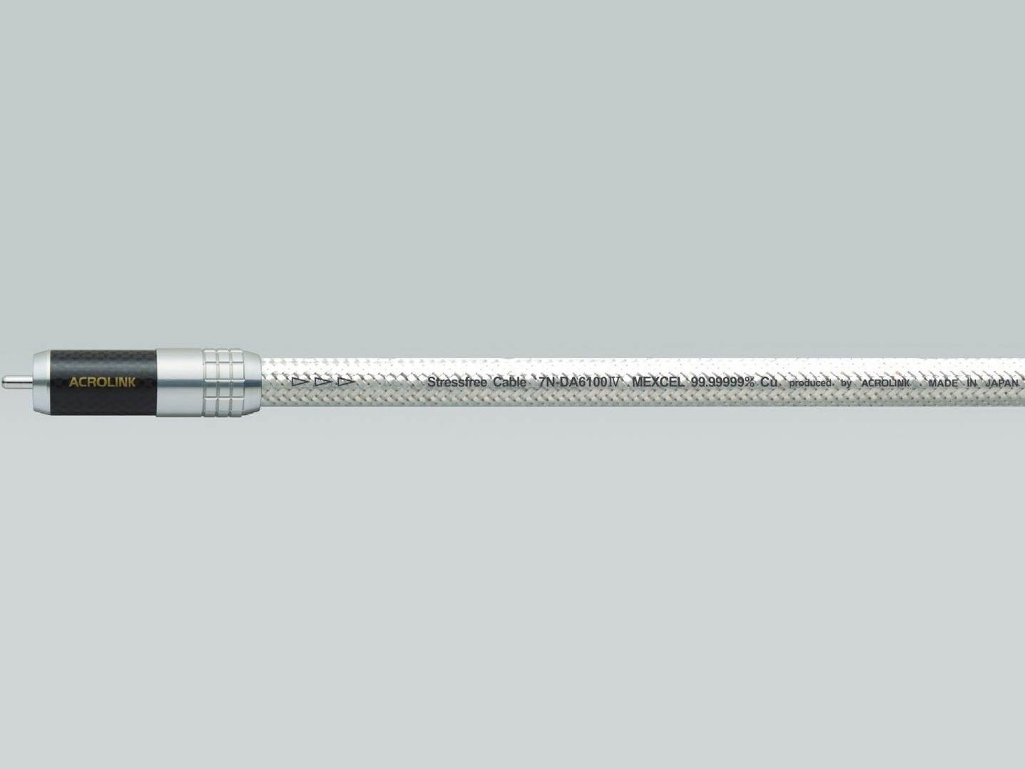 To Acrolink 7N-DA6100IV Mexcel ειναι ενα ψηφιακο καλωδιο 75Ω, με αγωγους κατασκευασμενους απο υψηλης καθαροτητας μονοκρυσταλλικο stressfree χαλκο 7N (99,99999%) Mexcel, τερματισμενο με βυσματα RCA (με κεντρικο πιν απο βυριλλιο χαλκο και γειωση απο φωσφορικο μπρουτζο. Αμφοτεροι ακροδεκτες ειναι διπλα επαργυροι και επιρροδιωμενοι.