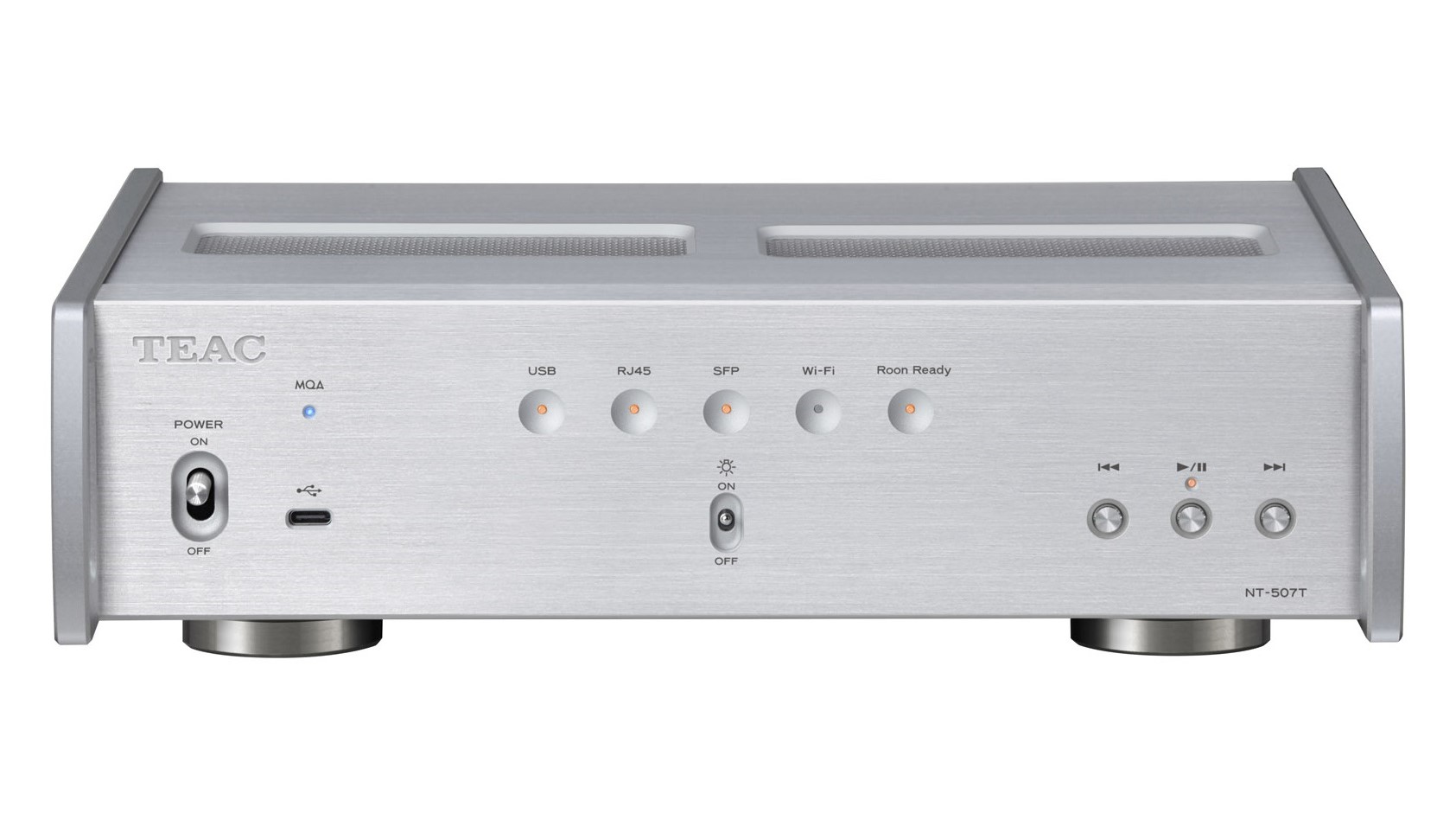 Το Teac NT-507X ειναι transport streamer. Αποκωδικοποιει MQA και ειναι Roon Ready. Εισοδοι: 1x SFP Optical, WiFi, RJ45, 1x front USB-C. Εξοδος: 1x rear USB-A (προς USB DAC).