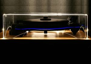 The Origine dustcover is crafted by Oracle Audio and is offered as an option. It covers the whole units all the way down to the supporting furniture and has a partial opening at the back to make room for the audio and power cables. The Origine logo is laser engraved in the 3mm acrylic from the inside.
